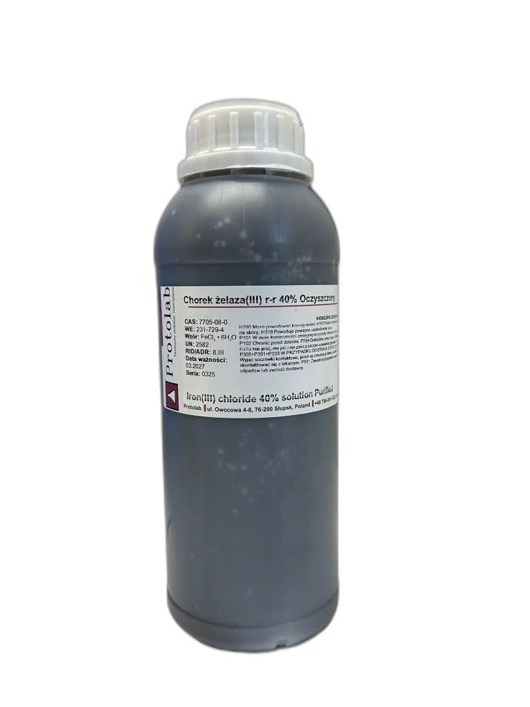 Stabilny roztwór chlorku żelaza(III) o stężeniu 40%, przeznaczony do zastosowań technologicznych i laboratoryjnych. Wzór chemiczny: FeCl₃.